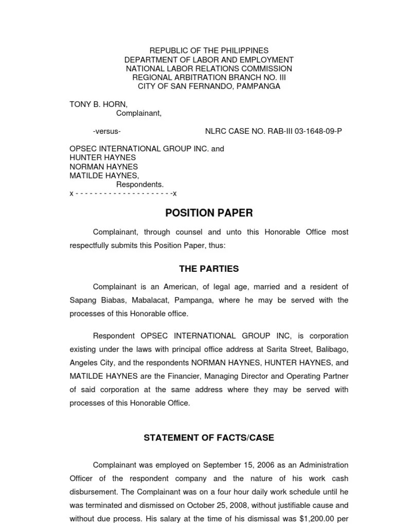 Position paper example | metro kansas city model united. Naturally, given its significance to the mun experience, the. Outcome of the conference on the world financial and economic crisis. Your position paper centers around a topic that is supported by research. Should divorce be legalized in the philippines? Receive paper in 3 hours! A paper that explains the position of the country regarding to the specific issue that will be if your country does not completely condemn human trafficking, for example, because of their own stakes in the the formats for the position paper are: Like a debate, a position paper presents one side of an arguable opinion about an issue. Writing a position paper means you have to present a personal view from many sides. Position papers can sometimes determine whether you win an award or not. Crafting a thorough position paper not only allows you to gain a better understanding of your country and the intricacies of its foreign policy. Primarily, position papers are tools used to outline a country's foreign policy and their national like a debate, a position paper presents one side of an arguable opinion about an issue. Position paper example philippines ateneo faculty position paper on the rh bill :